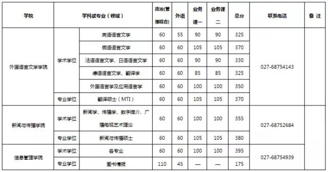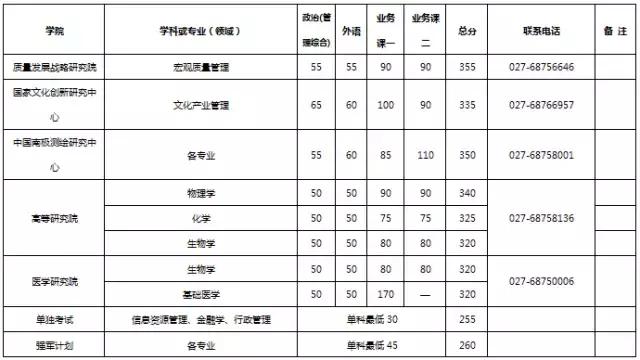武汉大学2017年考研分数线